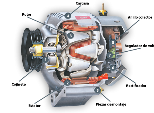 El alternador consta de varios componentes clave: